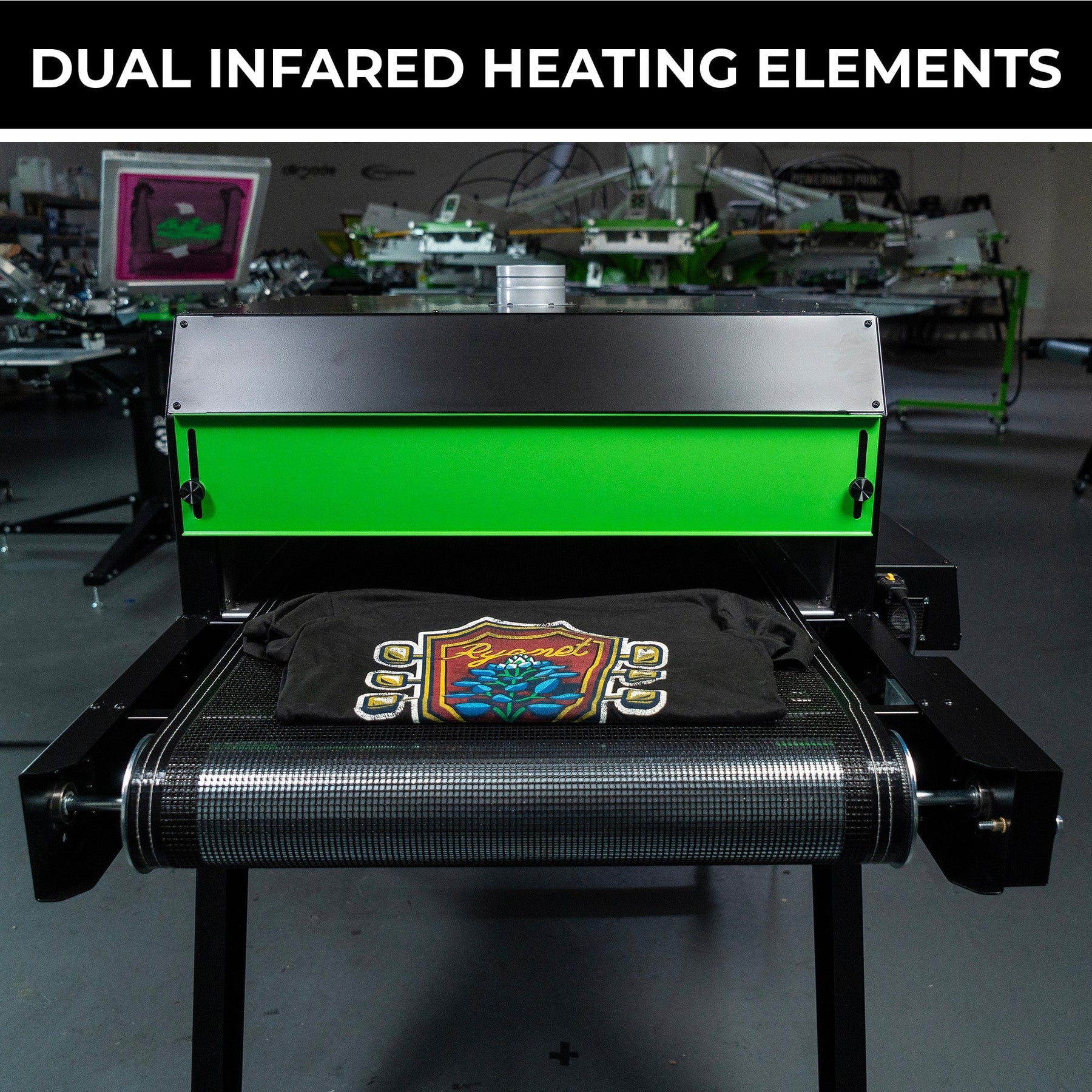 I've been screen printing for 5 years, curing everything with a flash... time for the big upgrade. I'm impressed with the overall quality [of the RileyCure 245]. It took a few hours to get this set up, and I was running test prints the day it arrived. At this point, the unit can cure shirts just about as fast as I can print so I am very happy. My settings can probably be tweaked a little better, but this machine is really saving me a lot of time and ensuring consistency of cure. So far, this has basically doubled my productivity and then some.